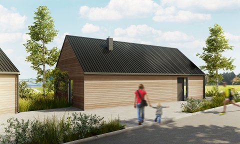 Krásný přízemní dům 4+kk s dřevěným obkladem nabízí moderní zařízení vhodné například pro mladé páry plánující rodinu. Přízemní koncepce je navržena tak, aby obytné prostory poskytly dostatek místa, aniž byste museli stoupat do vyšších pater. Venkovní dřevěná terasa dokonale spojuje celý dům se zahradou a nabízí příjemné prostředí pro venkovní aktivity.