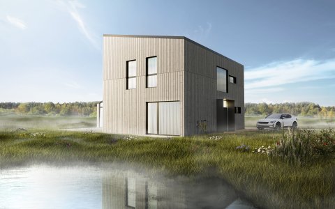 Dům je navržen tak, aby v moderním stylu zapadal a ladil s okolní krajinou. Fasáda ze svislých dřevěných kosolamel zajistí moderní vzhled a bezúdržbovost. Hlavní dominantou celého vzhledu domu je jedna celá prosklená stěna v obývací místnosti, ze které je výhled na venkovní terasu a přilehlou zahradu.